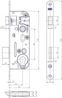 Door hardware, door handles, Solido mortise lock pzw dm 50 mm, 88mm spacing, silver plated, zinc-plated