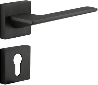 Door hardware, door handles, knobs, Solid Norway interior handles, stainless steel, black flat, OB square rosette