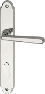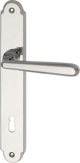 Door hardware, Marchesi Alt Wien interior handle, chrome brass, long plate, open hole rosette, 90mm