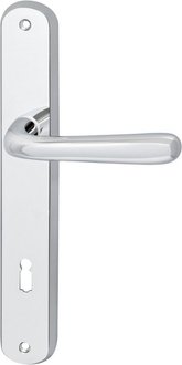 Door hardware, door handles, Marchesi Elegant 22 interior handle, chrome, long label, exterior door rosette