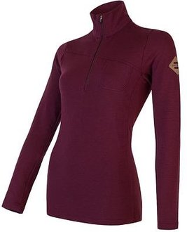 Women's merino wool long-sleeve functional top, sensor air traveller, port red, size L
