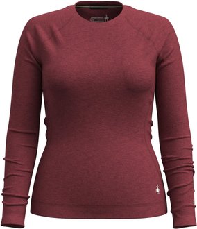 Women's merino wool long-sleeve functional top, smartwool baselayer, pomegranate heather, size S-M