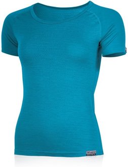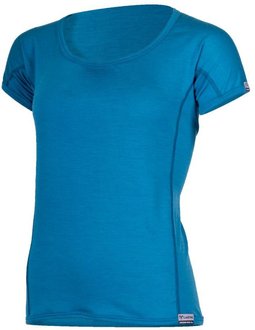 Women's Lasting Mona short-sleeved merino wool functional top, blue, size XL