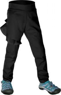 Unuo children's softshell pants with fleece, flexible, sporty style, black color, size 140/146