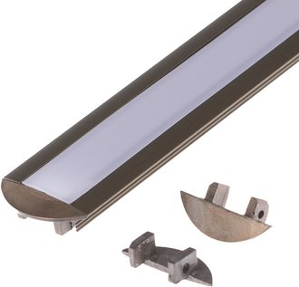 LED strip profiles, end caps, and mounting brackets. Round Profile V5.